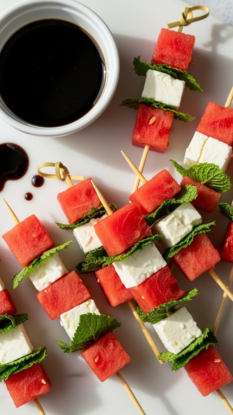 4. Fresh Outdoor Bridal Shower Menu Ideas for Sunny Days: Watermelon Feta Mint Skewers