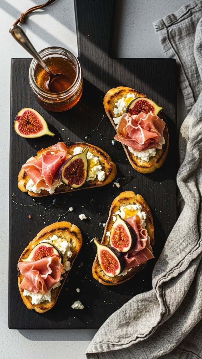 - Drizzle honey over crostini and sprinkle with fresh thyme and black pepper.