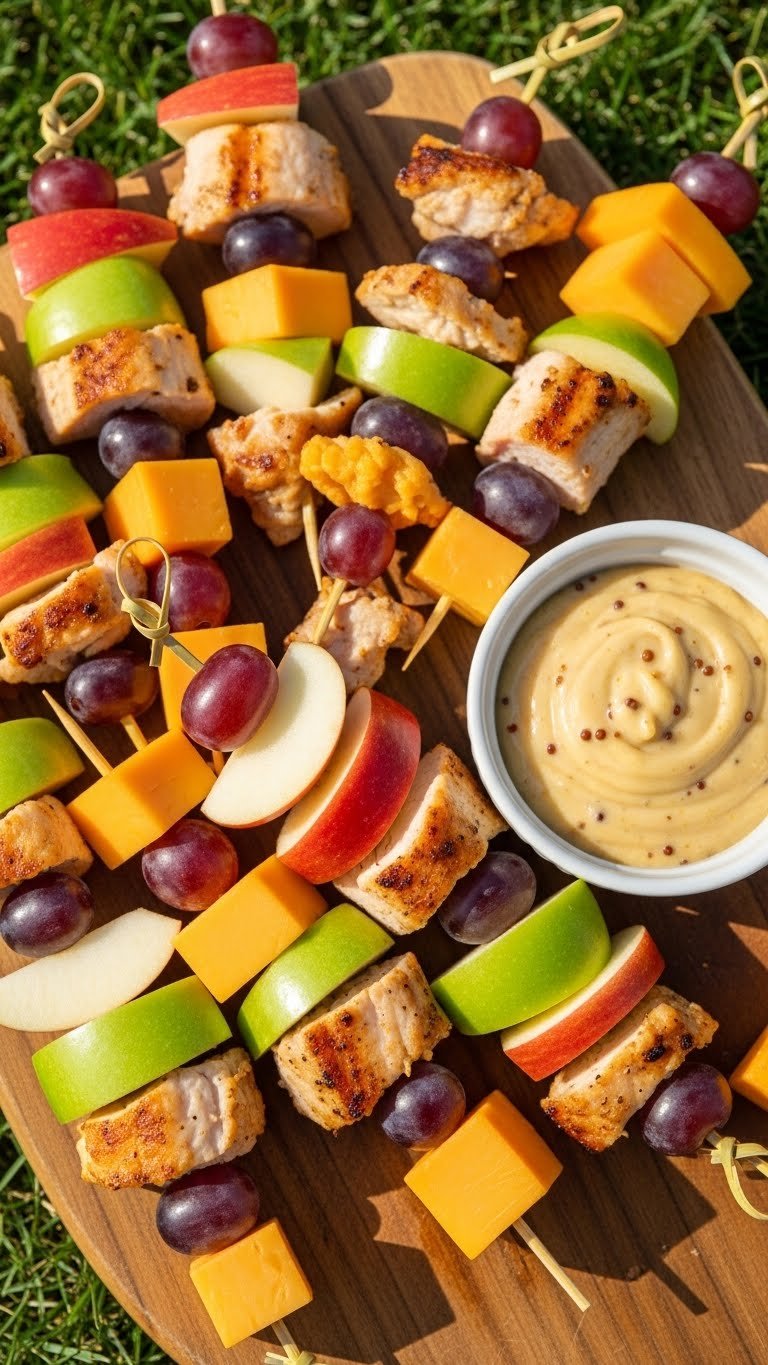 These skewers mix savory turkey with crisp apple and sharp cheddar. The sweet-tart apple and mild turkey balance the creamy cheddar. Skewers are simple, no-mess, and fun for kids.
