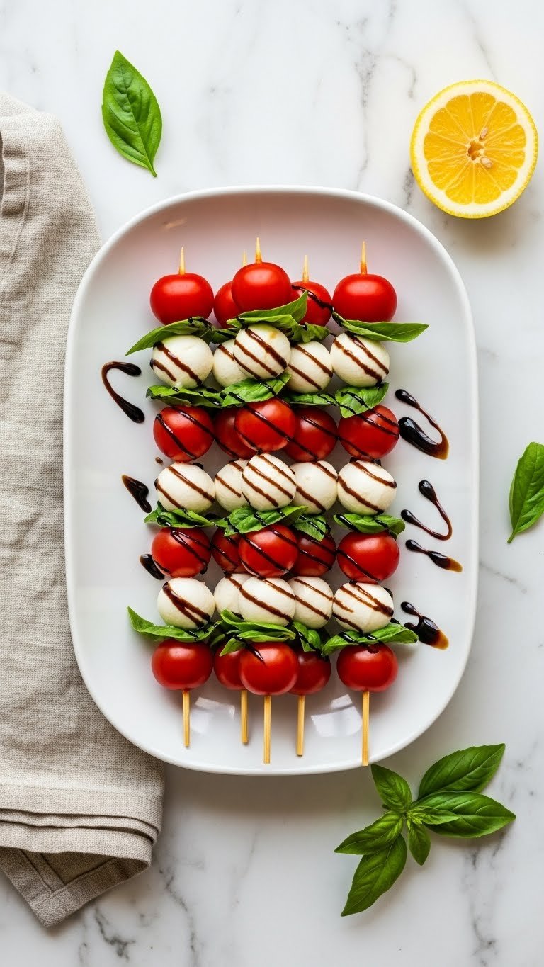 2. Caprese Skewers with Balsamic Glaze — no-mess picnic bites