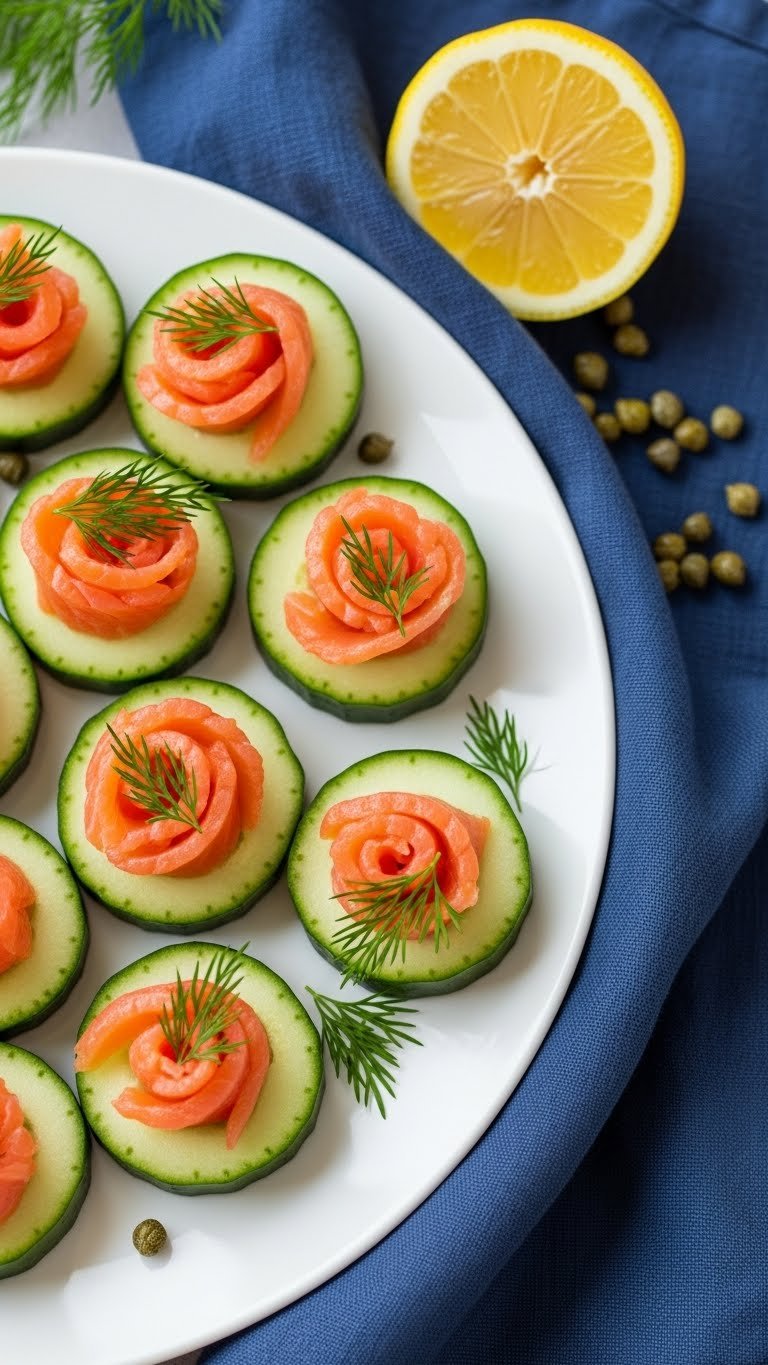 Arrange on a white platter with lemon wedges and extra dill. Pair with chilled white wine or sparkling water with cucumber slices. Store covered in the fridge up to 24 hours. Make ahead and assemble same day for best texture. These are classy bites for seaside or garden picnics.