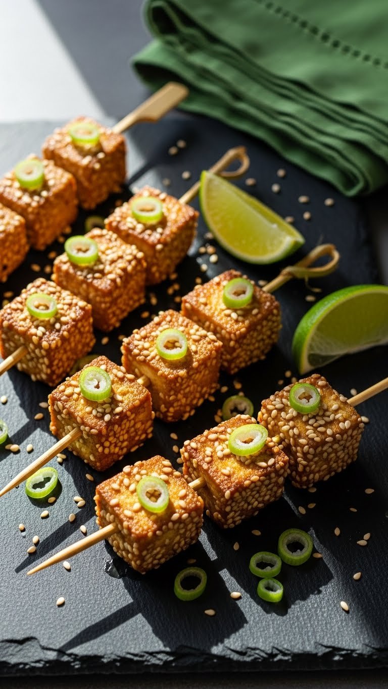 Serve on a platter with extra sesame seeds and lime wedges. Pair with cold jasmine tea or a light lager. Pack in an airtight container with parchment. Make ahead and reheat briefly if you prefer warm. These are hearty vegetarian bites for park picnics.