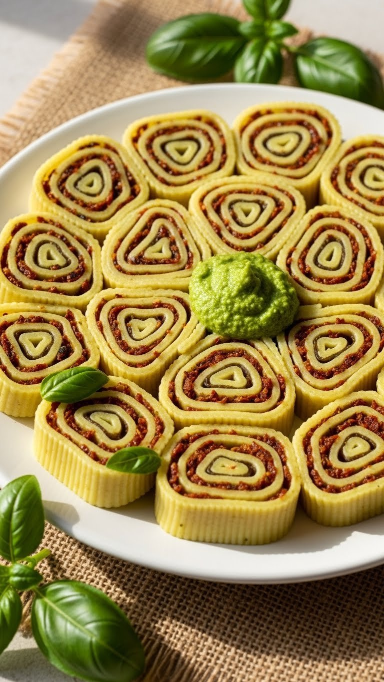 Place pinwheels on a pretty platter with extra pesto for dipping. Pair with a chilled white wine or sparkling water. Make ahead and slice just before leaving or chill fully for easier transport. Great for family picnics and kid-friendly snack plates.