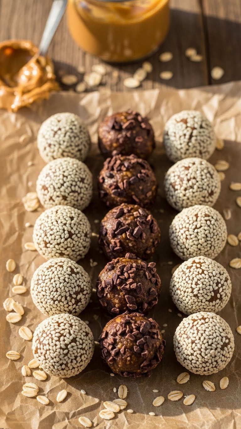 - Roll balls in sesame seeds or cocoa nibs if desired.