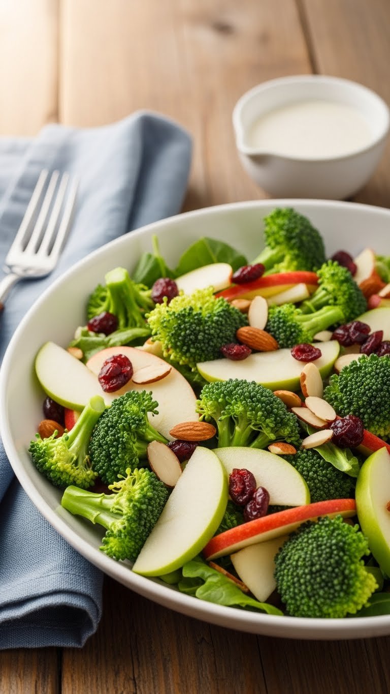 This crunchy broccoli apple salad resists sogginess with a tangy yogurt-dill dressing that clings without making veggies limp. Raw broccoli and crisp apple keep texture, while dried cranberries add chew and toasted almonds deliver nutty crunch.