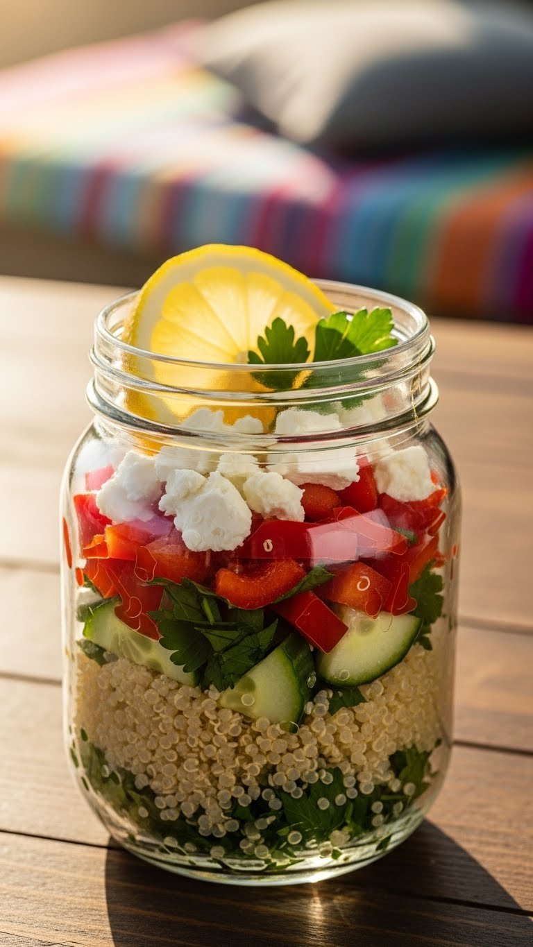 Spoon salad into mason jars or a ceramic bowl for easy transport. Garnish with extra parsley and lemon slices. Pair with grilled skewers, chilled wine, or sparkling lemonade. Make ahead: quinoa and dressing can be prepared a day ahead and mixed before serving.