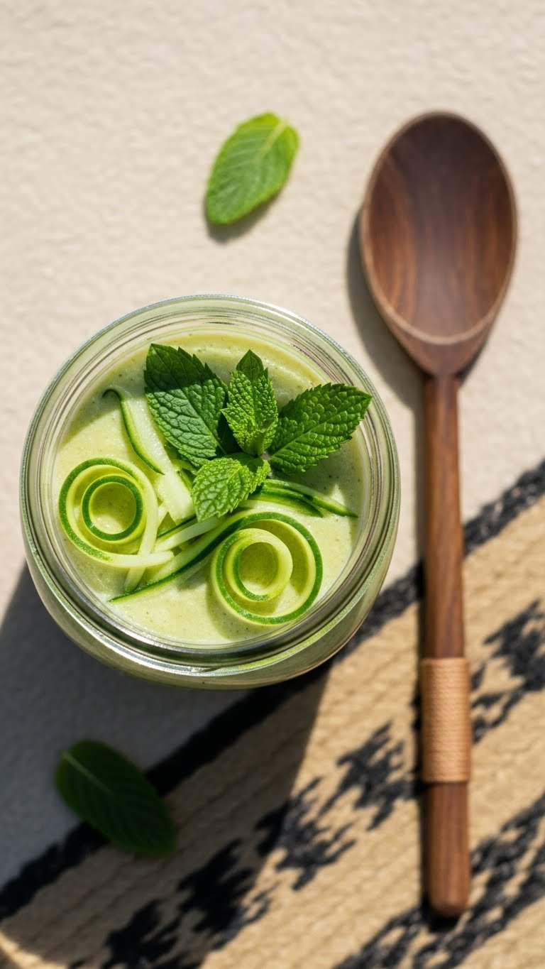 Pour into small mason jars or shot glasses for a picnic starter. Garnish with mint and cucumber ribbons. Pair with crusty bread, savory skewers, or a light sparkling beverage. Make ahead: blend and chill up to 24 hours in advance.