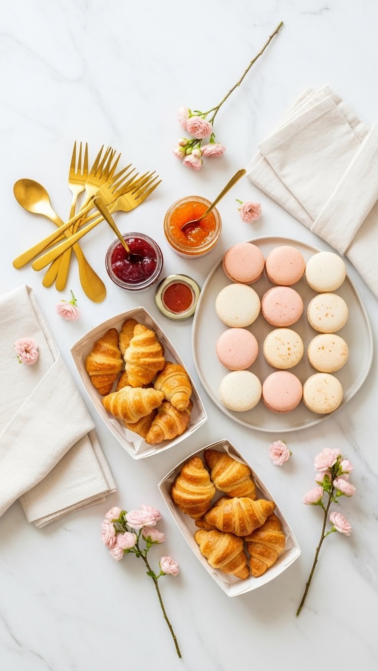 Which pastry to skip? If your venue lacks refrigeration, avoid cream-filled tarts and choose sturdy items like macarons and butter croissants.