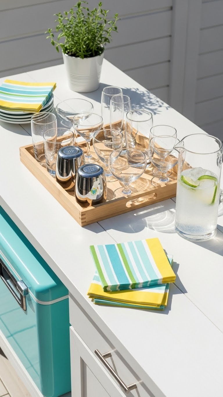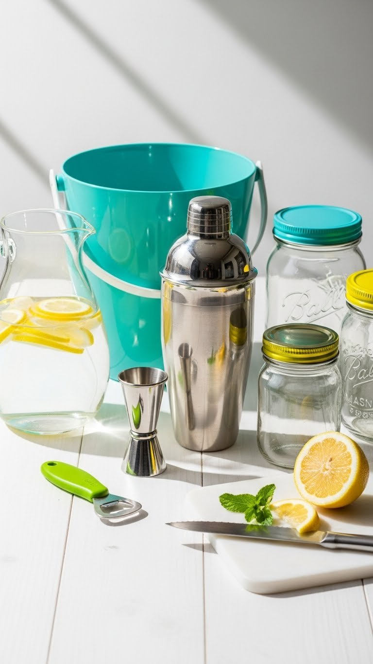 - Extras: Small cooler or tub for beer, pitcher for pre-batched drinks, garish bowls for fruit and herbs.