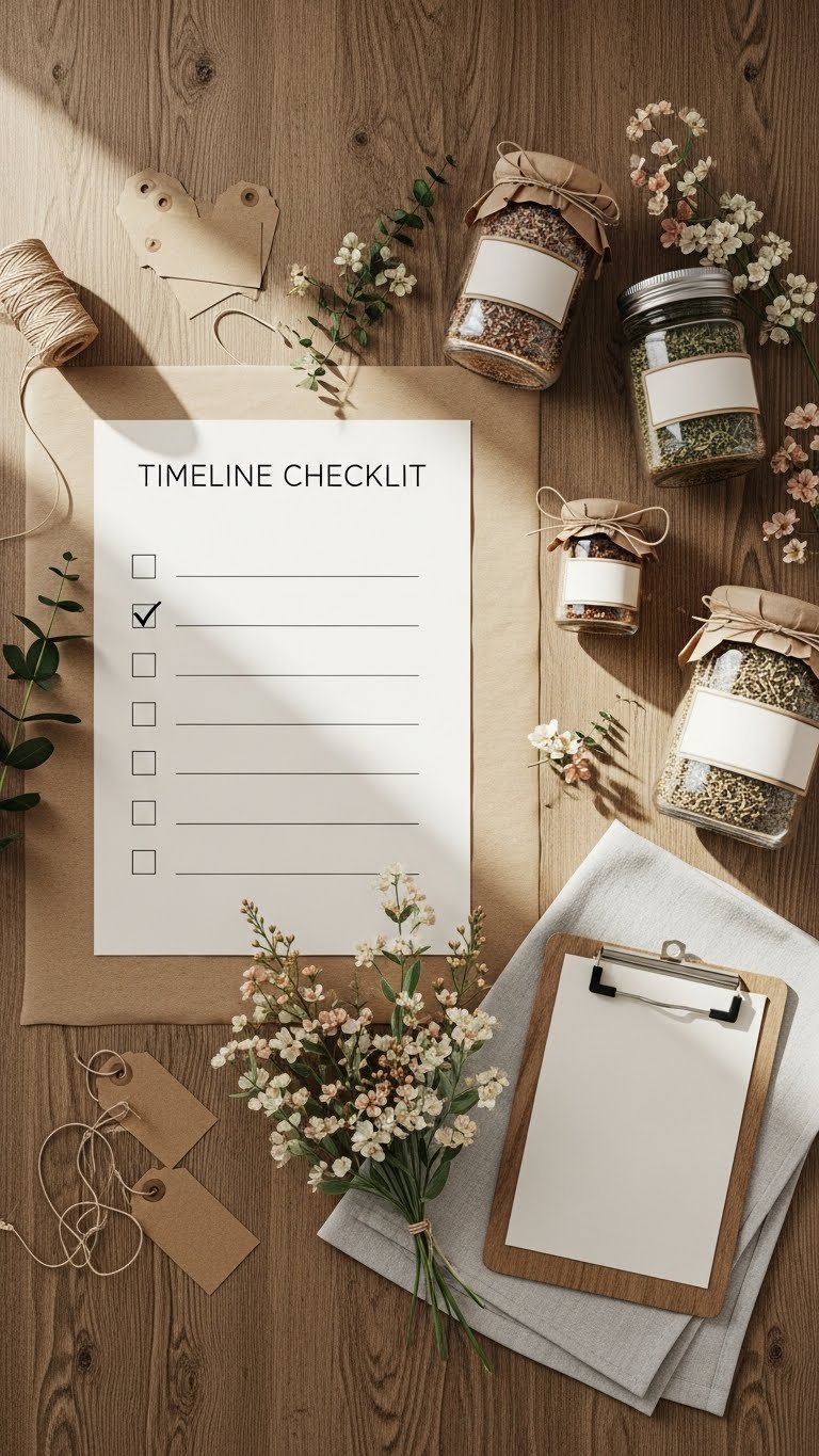 - 4 weeks: Contact local vendors; reserve produce and baked goods.