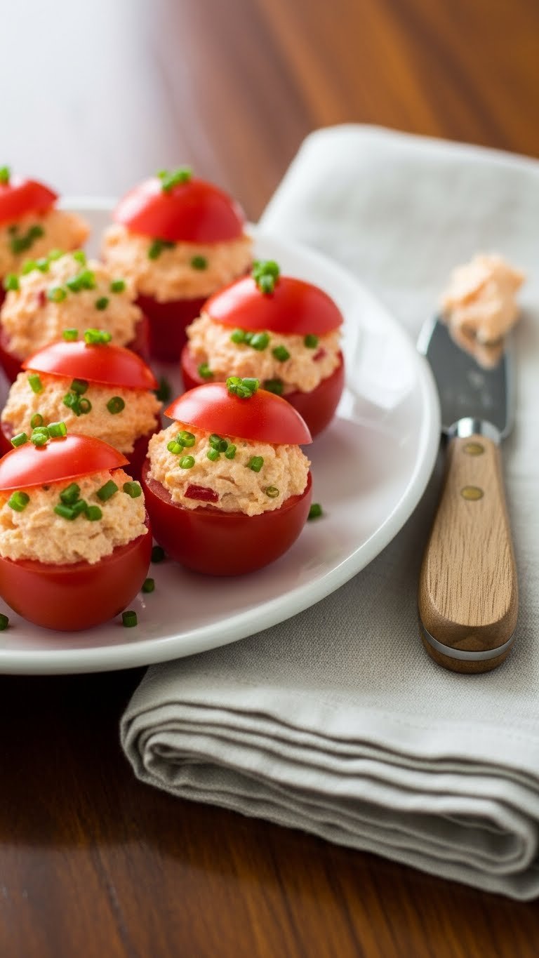 This bite-sized starter turns classic Southern pimento cheese into a refreshing, tangy canapé. The tomatoes add bright acidity while the filling is creamy and smoky. It’s a colorful, no-fuss recipe that’s great for passing trays and outdoor parties.