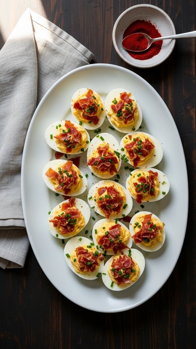 Arrange on a chilled platter with a bed of crushed ice or lettuce for color. Garnish with extra chives and smoked paprika. Pair with light beers or a dry sparkling wine. Make filling up to 24 hours ahead and fill tomatoes just before serving to prevent sogginess. These are bright, handheld, and perfect for Derby cocktail hour.