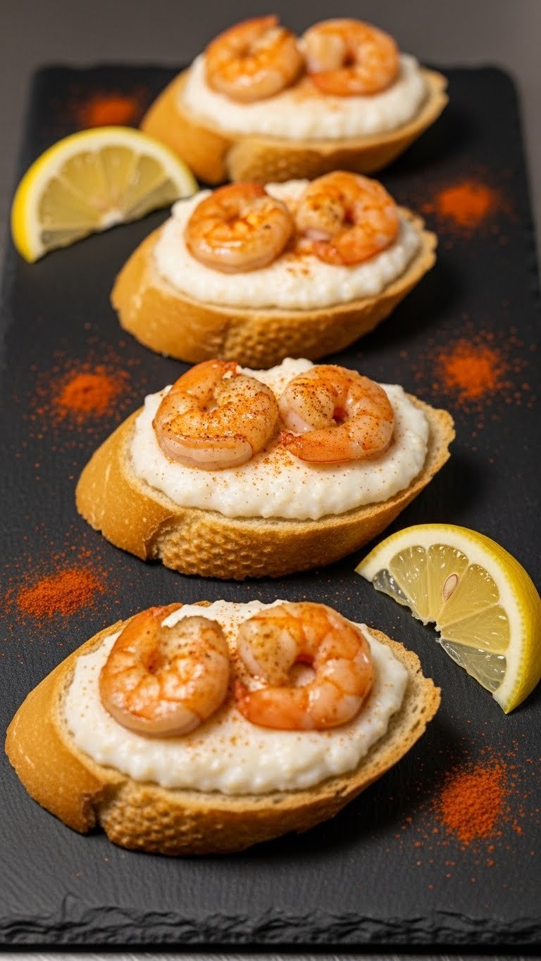 Serve on a long platter with lemon wedges on the side. Pair with a crisp white wine or a salty beer. Make grits up to 1 hour ahead and keep covered; reheat gently with a splash of milk. Toast crostini just before topping to keep them crisp. These are rich, creamy, and full of classic Southern coastal flavor.
