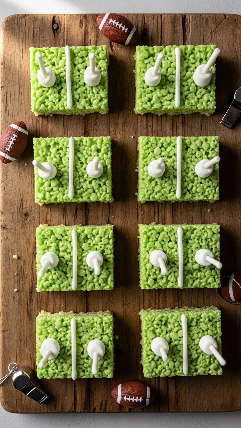 These field goal Rice Krispie squares are chewy, sweet, and nostalgic. Cocoa or caramel accents mimic turf lines and goal posts for a playful touch. They’re fast to make and perfect for kids and adults.