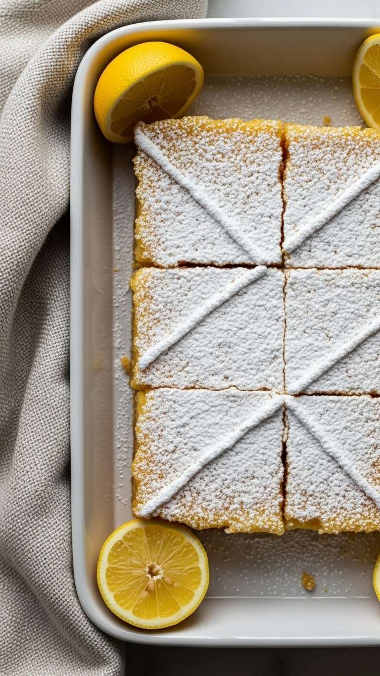 Arrange bars on a white platter with lemon slices. Use a stencil to dust lines like a tennis court. Pair with sparkling water or mint tea. Store refrigerated up to 4 days; bring to room temp before serving. Make a day ahead for easiest slicing. These lemon bars are a bright addition to sports themed baby treats.