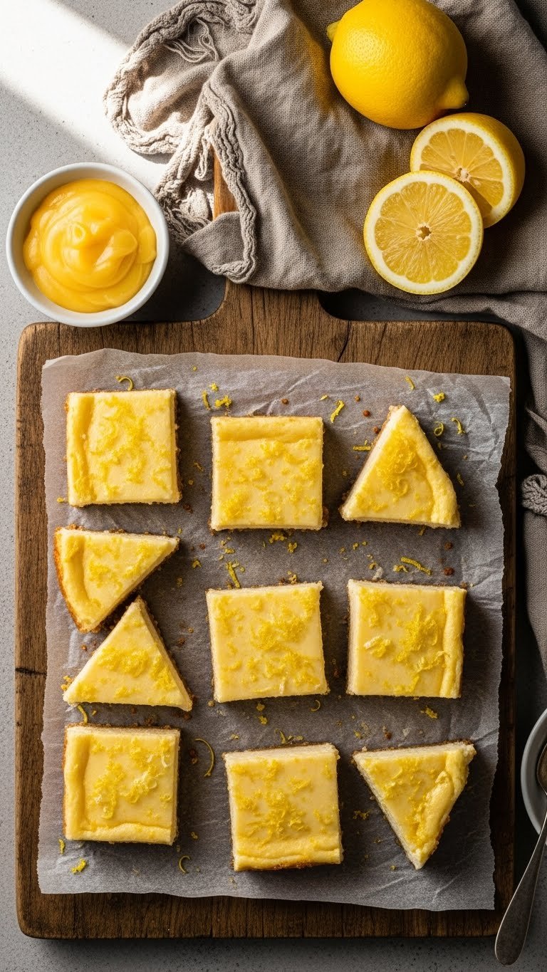 Cut into neat squares and zest more lemon on top. Add fresh berries and a mint leaf for color. Serve with cold lemonade or a sparkling lemon spritzer. Keep stored in the fridge for up to 4 days. Make-ahead: assemble the night before for best flavor.