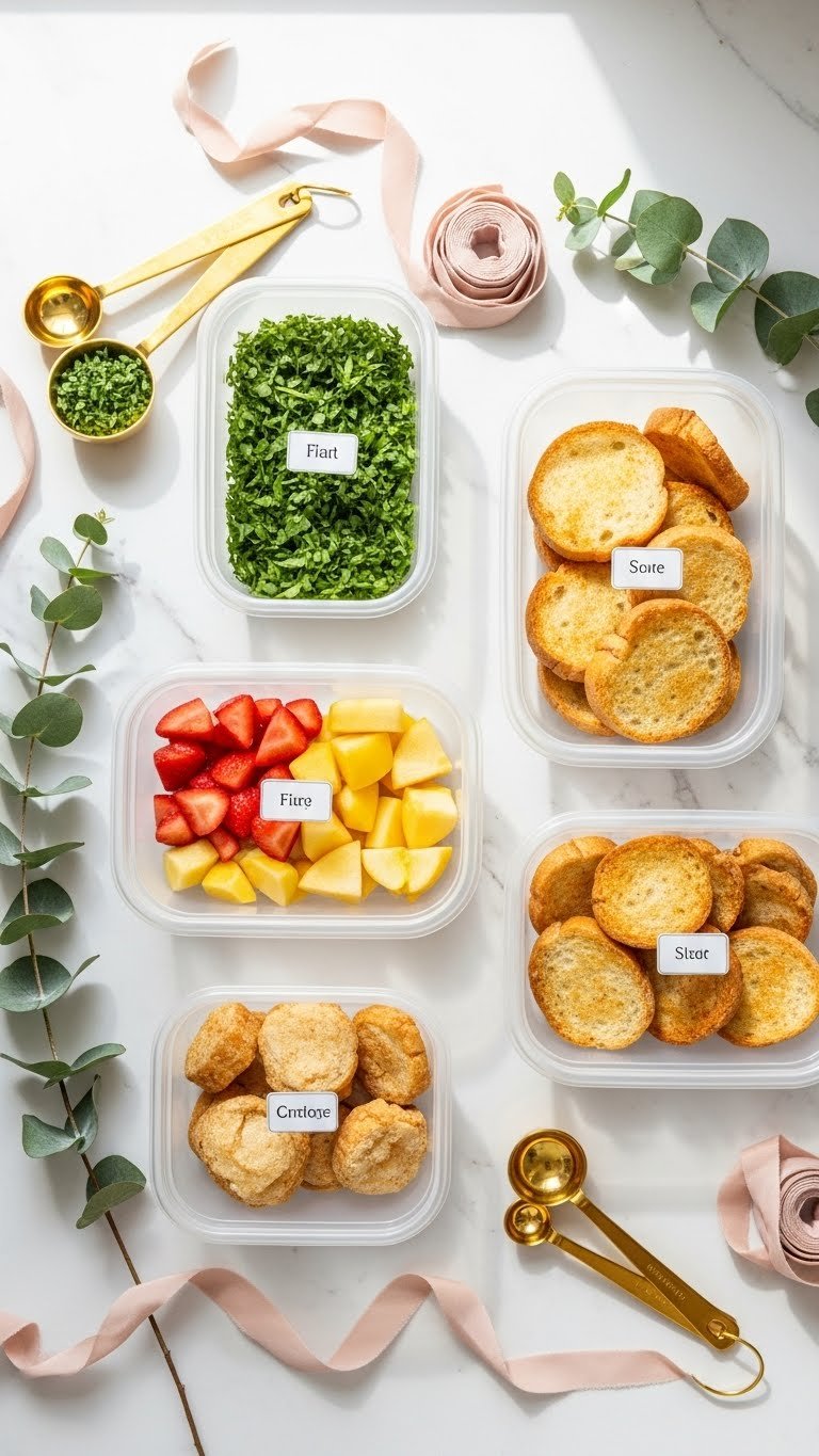 Divide your work into three zones: freeze/future, fridge-ready, and day-of. This prevents bottlenecks.