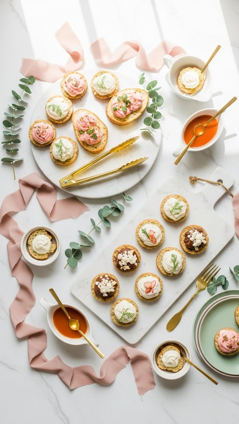 - Chill platters partially assembled; finish garnishes 20–30 minutes before service.
