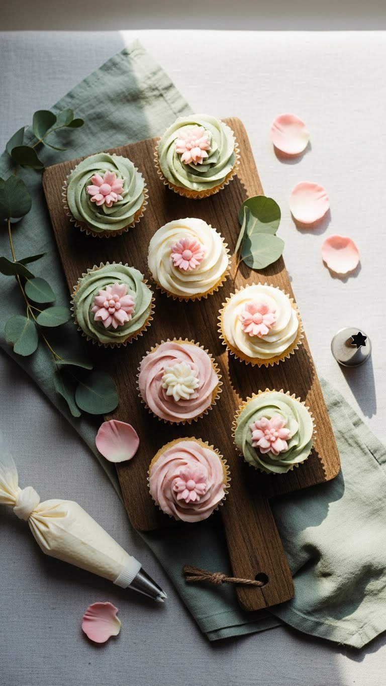 - Tuck a soft linen scrap between cupcakes only if needed—avoid touching piped petals.