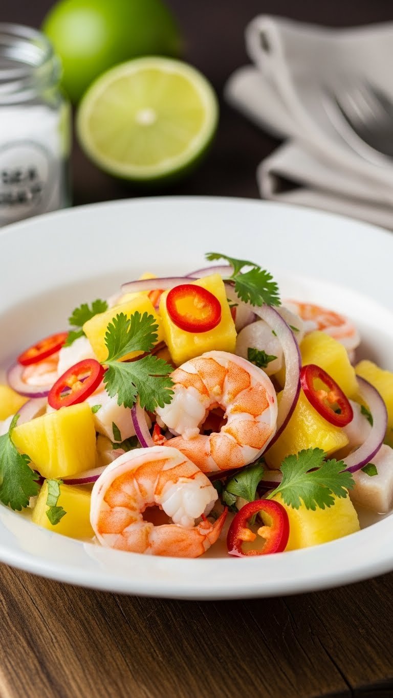 This Pineapple Coconut Ceviche mixes citrus-bright acidity with sweet tropical fruit. The shrimp are tender and tangy, balanced by creamy coconut and juicy pineapple. It’s an exotic, light starter that screams summer party. You’ll love the pop of color and the crisp texture contrast. Prep is fast and the flavors get better after a short rest.