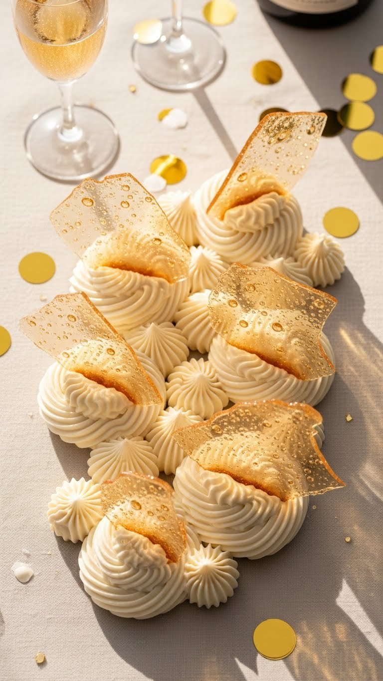 - Place 2–3 meringue kisses atop a lightly piped buttercream.