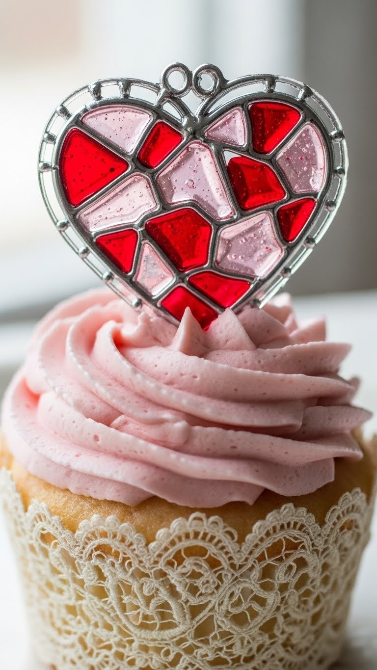 - Insert one stained-glass heart into a buttercream peak.