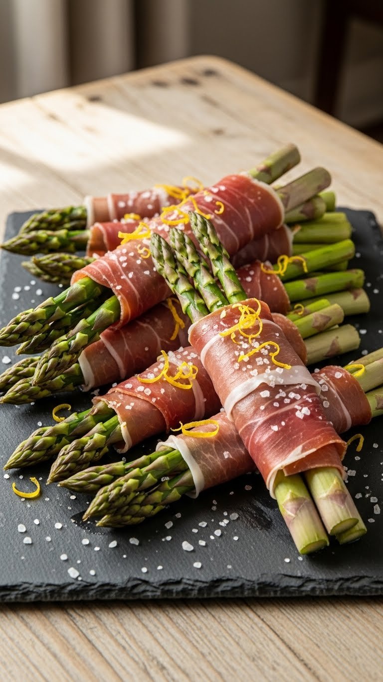 - Roast 10–12 minutes until prosciutto is crispy and asparagus tender.