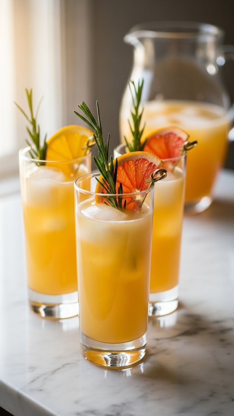- Garnish each glass with a rosemary sprig and citrus wheel.